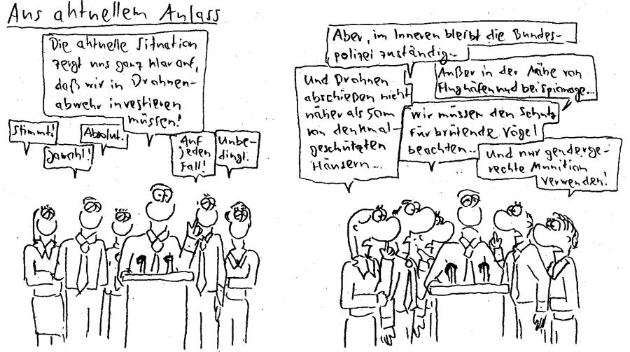 05.10.2025Olli's Kommentar:Die deutsche Drohnenabwehr würde vermutlich aus einem Warnhinweis bestehen, wenn man sich mal auf eine Definition einigen könnte, was eine Drohne eigentlich ist...