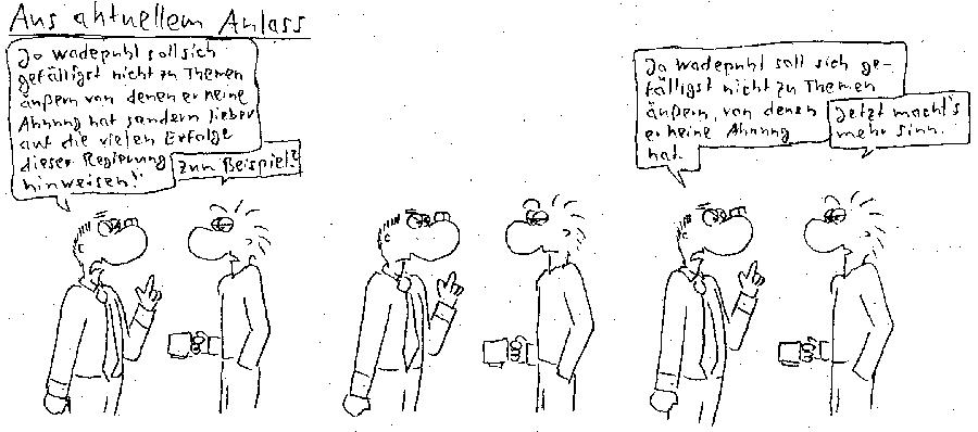 16.11.2025Olli's Kommentar:Es ist natürlich unfair, das Versagen der Ampel mit dem Versagen von Schwarz/Rot zu vergleichen. Die Ampel hat damals ihr "Sondervermögen" abgenommen bekommen...