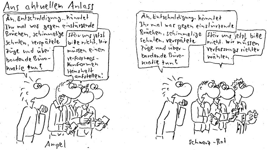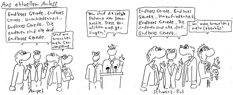 28.09.2025Olli's Kommentar:Halleluja! Die Koalition, die ihren Kanzler im ersten Wahlgang verweigert hat und eine Kandidatin für das Amt des Verfassungsrichter einer rechten Verleumdungskampagne geopfert hat, hat erfolgreich eine Routine-Aufgabe gelöst!