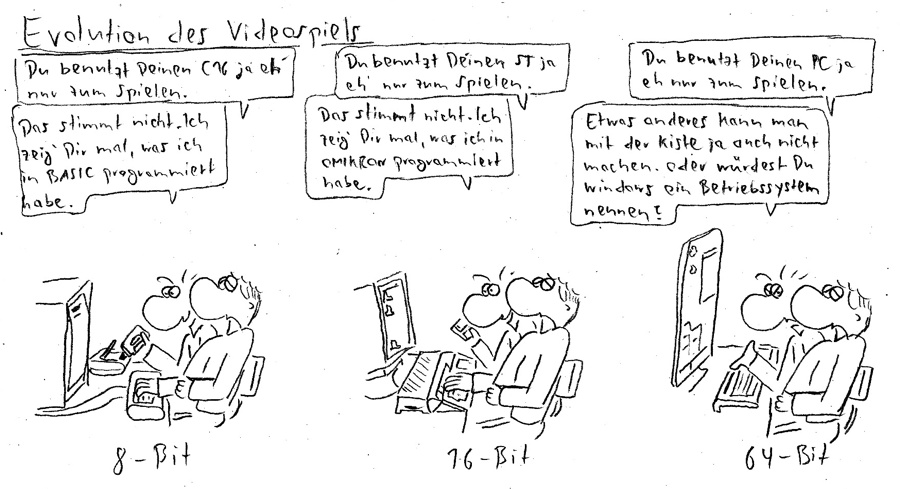13.03.2020Olli's Kommentar:Was waren das noch Zeiten, als sich die Journalisten gegenseitig die Stärken und Schwächen ihrer Lieblingsrechner vorhielten. Hallo an Anatol Locker, Henrik Fisch, Heinrich Lehnhardt und Michael Hengst!