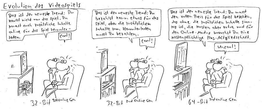 20.03.2020Olli's Kommentar:Zugegeben, einen ähnlichen Comic gab es schon einmal, aber Nintendos jüngesten Versuch, die Spieleplatform "Smartphone" zu erobern, konnte ich einfach nicht unkommentiert lassen.