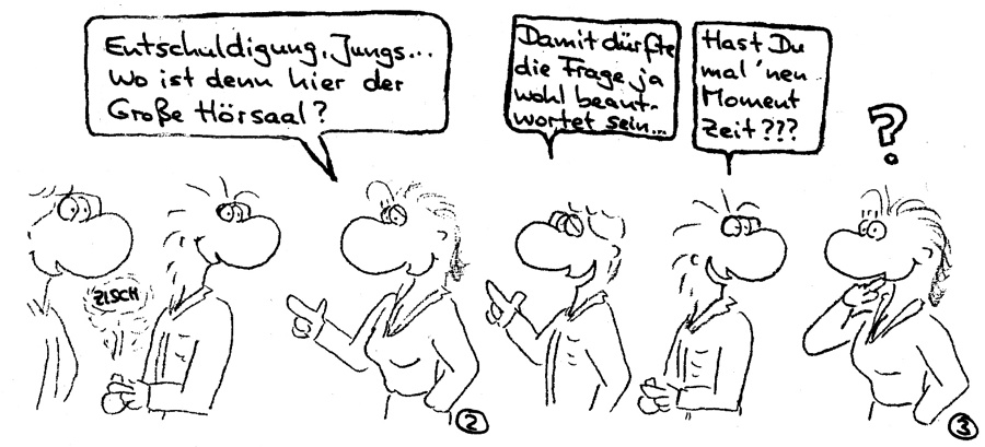 Olli's Kommentar: Wer also einen Chemiker mit einem Meßkolben in Fachschaften von Studiengängen sieht, wo die Frauenquote größer als 50% ist: Er versucht einfach nur herauszufinden, ob seine Analyse Obszon enthält.